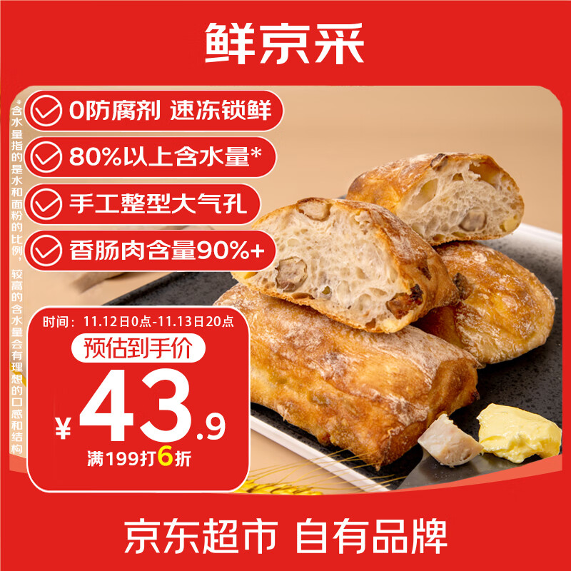 包邮 鲜京采香肠芝士恰巴塔540g/6枚 咸口面包欧包早餐三明治家庭空炸速食